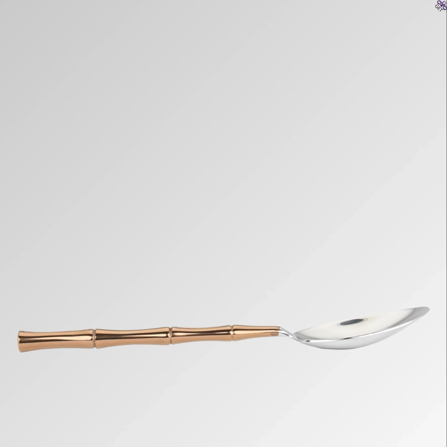 Return To ShopThe Royal Bamboo table spoon is handcrafted from high-quality 18/8 (304) mirror-polished stainless steel. Designed for excellence, this spoon not only reflects timeless craftsmanship, but also features a bamboo shaped handle, adorned with a stunning copper color achieved through Titanium Nitride Coating.